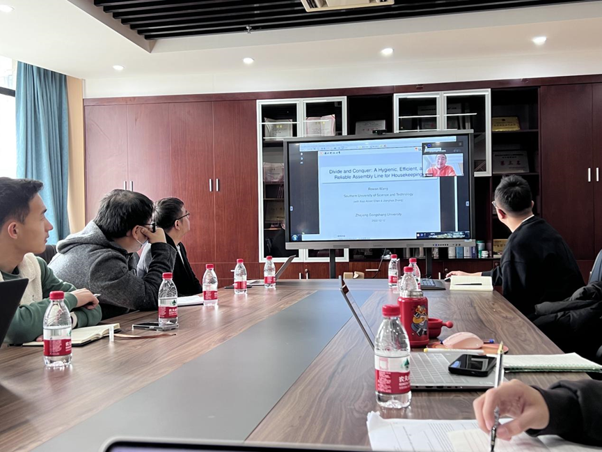 2022年12月12日下午,南方科技大学王宇教授应邀在腾讯会议(ID:791-504-601)开展了一场题为“Divide and Conquer: A Hygienic,Efficient, and Reliable Assembly Line for Housekeeping(流水线式客房清洁流程设计)”的学术讲座。本次讲座采用线上线下相结合的方式,线下讲座在综合楼615会议室举行,由香港三级片 张崇辉教授主持,香港三级片 部分老师和研究生参加了此次讲座。