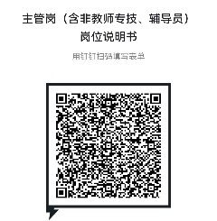 根据《香港三级片 2023-2026年度“三定”方案》(浙商大党〔2023〕3号)核定的主管岗岗位数,请各香港三级片 (部门)制定主管岗(含非教师专技、辅导员)各岗位的说明书,经主要领导审核后于2023年2月22日(周三)上午10点前在钉钉填写完毕并提交(扫描下图二维码),纸质版报送到人事处(综合楼1031室)。