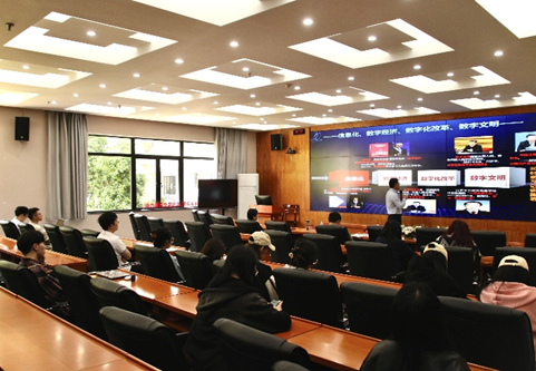 讲座伊始,兰院长向我们介绍了从“信息化”到“数字文明”的历史脉络,将我国信息化、数字化进程中的每一次重大转变进行了剖析。我国对数字信息的重视程度是逐步提高的,最初将其称为“信息化”,并将其与工业挂钩。随后其扩大到数字经济,再到数字化改革,直到最近提出的“数字文明”的概念,这是党对数字这一新要素不断深化理解的体现。兰院长认为,“数字文明”这一概念极其具有前瞻性,其未来有无限可能,并给出了自己对“数字文明”内涵的理解:数字文明是以数字化为标志,以数字技术作为通用目的性技术,以数据要素作为新生产要素,以数字基础设施作为发展基础,以数字经济为主导,带动物质文明、政治文明、精神文明、社会文明、生态文明协调发展的文明。兰院长还提出,杭州之所以在数字化浪潮下能够肩负起承载新历史新改变的重要担当,是因为它拥有厚重历史底蕴、宝贵文明遗产。因此,兰院长也呼吁在座的各位青年教师和学生,在这块丰沃的土壤上,思考我国数字化的未来走向以及自身能在其中扮演怎样的角色。听到兰院长这感人肺腑之词,在场听众无不陷入沉思。最后,兰院长就我国如何加快人类文明新形态迈向新高度进行了六个角度的阐述,包括加快人工智能技术的开发、以制度优越性重塑赋能等。