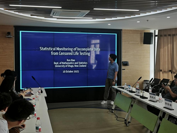 2025年10月16日下午,奥塔哥大学肖逊博士应邀来我校开展以“Statistical Monitoring of Incomplete Data from Censored Life Testing”为主题的学术讲座,本次讲座在综合楼644会议室举行,由香港三级片 徐安察教授主持。