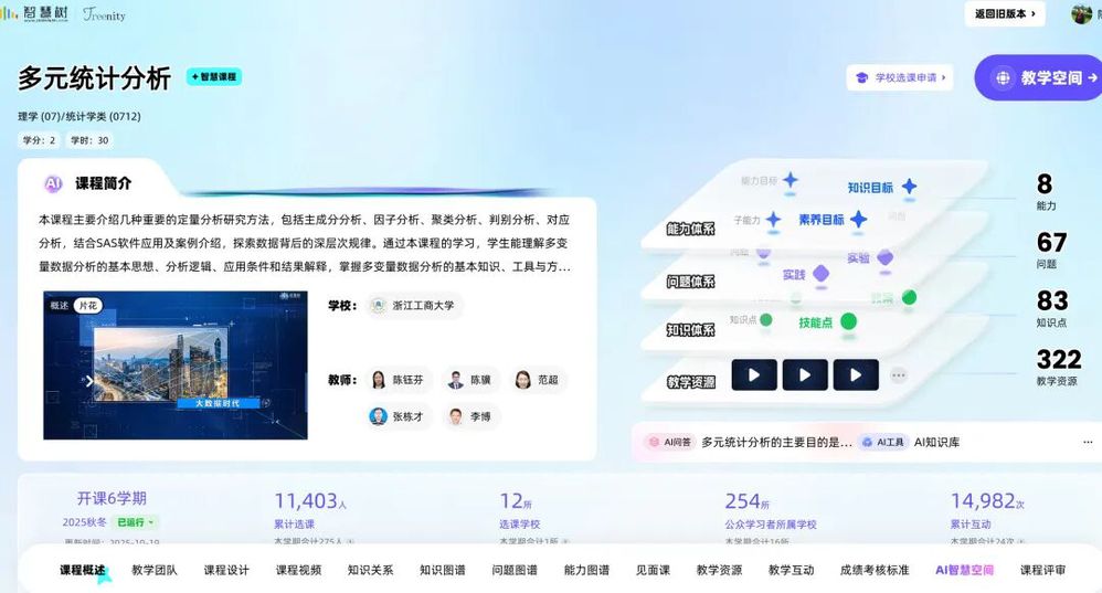 (4)技术融入,探索教学数字化新场景。积极推进教学的信息化,将数字技术与教学充分融合,持续完善数字教学资源、实验平台,探索“互联网+教学”课堂、课程知识图谱建设和教学数字化场景应用。《统计学》等课程获浙江省本科院校“互联网+教学”优秀教学案例。依托省级实验教学示范中心,开展实验案例、实验平台建设;获批浙江省“十三五”规划省级虚拟仿真实验教学项目2个,产学合作协同育人项目3项;建设知识图谱课程6门。积极利用智慧树平台,参与“慕课西行 同步课堂”、虚拟教研活动。