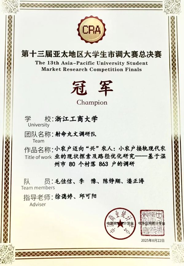 本科生培养以提升本科生统计应用能力为目标,构筑立体多元“1+4”CAMP能力培养模式,促使学生创新能力、专业素养持续提升。成果获浙江省教学成果特等奖(2022)。