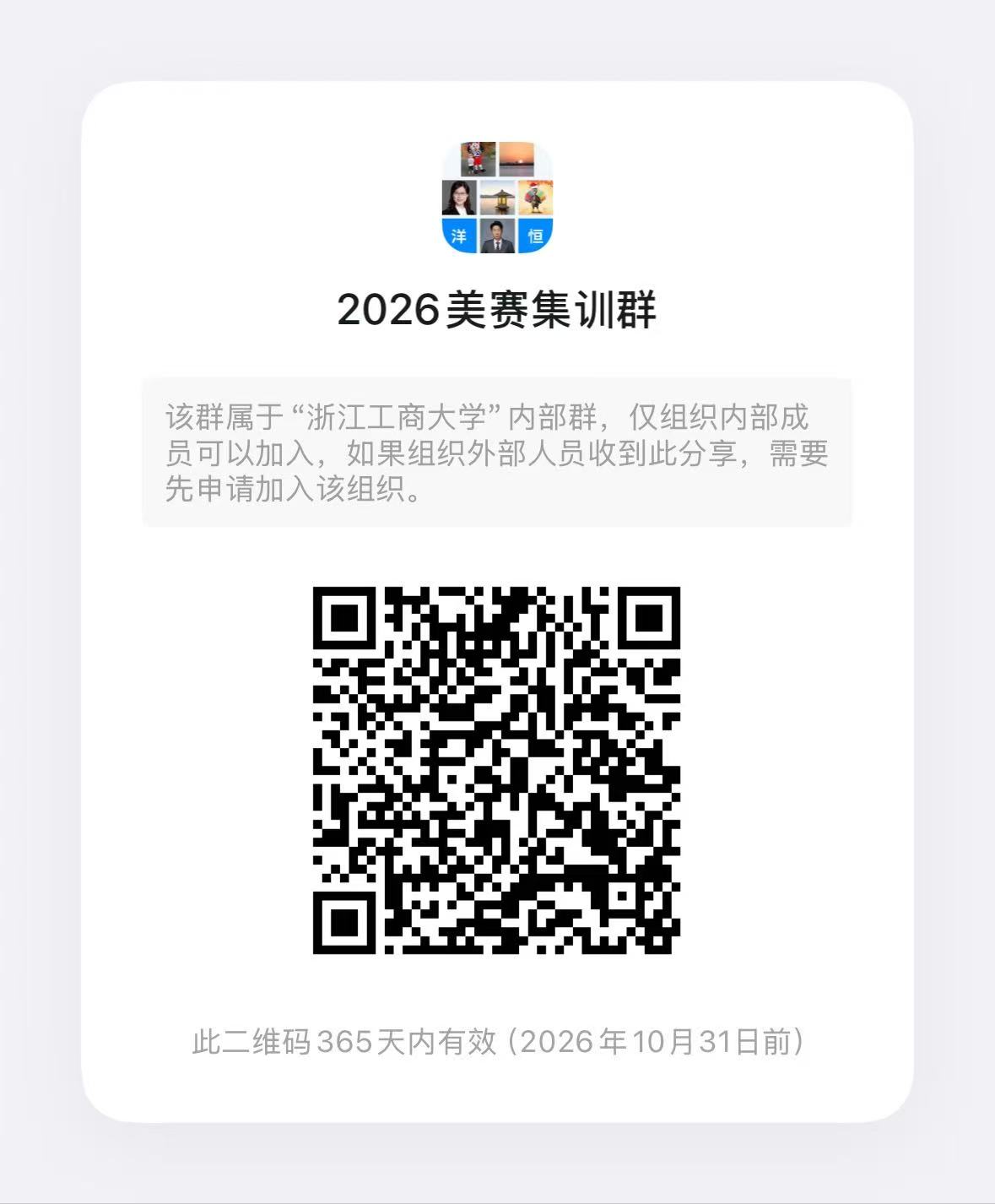 报名请加钉钉群:160640002969或直接扫下方二维码。报名截止时间:11月20日。集训将主要利用课余时间和寒假期间进行,寒假期间的集训不得请假,具体安排届时会在钉钉群公布。