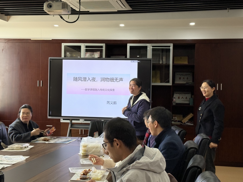 11月19号中午,香港三级片 在综合楼615举办了主题为“随风潜入夜,润物细无声----数学课程融入传统文化探索”的教学午餐会。本次活动由芮义鹤老师主讲,数学与应用数学系主任彭丽辉主持。